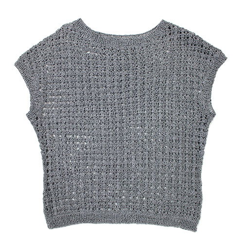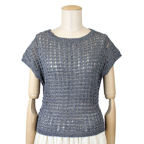 微かな青みを感じる鉄色にぴったりな質感とシンプルな編地のセーター。肩が少し隠れるデザインは腕をほっそりと見せる効果があります。 素材:コットン40% レーヨン40% 麻(リネン)20% 使用針:棒針5号 サイズ:胸囲101cm 着丈53cm 裄丈 約30cm * こちらの作品は、書籍には掲載されていおりません * 同品種(フォッシュ)での、お色変更も可能です ご希望の場合は、コメント欄にお色変更の詳細を入力してください(在庫がある色に限ります)