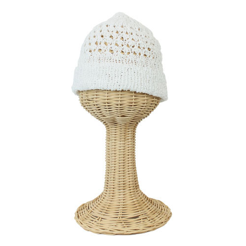 サイド部分がレース模様になったテープヤーンのサマーキャップ。コーディネートしやすい白・ベージュ・カーキ・ネイビーとスタンダードな色が揃っています。 デニムに出逢うニット掲載作品 素材:コットン 100% 使用針:棒針8号(4本針) サイズ:頭回り 43cm 深さ 25.5cm * 同品種(アラビス)での、お色変更も可能です ご希望の場合は、コメント欄にお色変更の詳細を入力してください(在庫がある色に限ります)