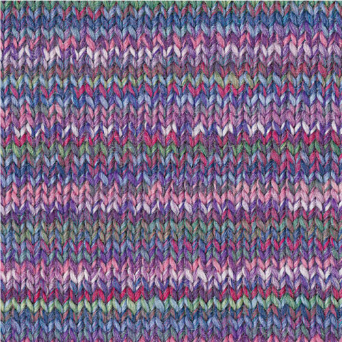 質の良いウールモヘヤの原料を篠の状態で7色の段染めに染め、それを2つ用意して紡績した多色ミックスの段染め糸です。中細という細番手で紡績することによって、棒針・かぎ針共にすっきりした厚さの作品を作ることができます。また、他の糸との引きそろえにも対応でき、自由なものづくりがお楽しみいただけます。