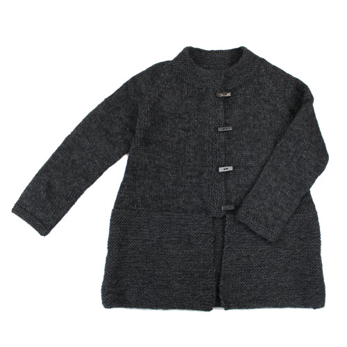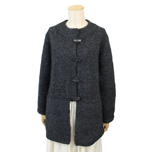 英国羊毛を使用したストレートヤーンに、細いモヘヤを引き揃えて編みます。独特な素材感と杢の色合いが特長のジャケットです。たっぷりサイズです。
