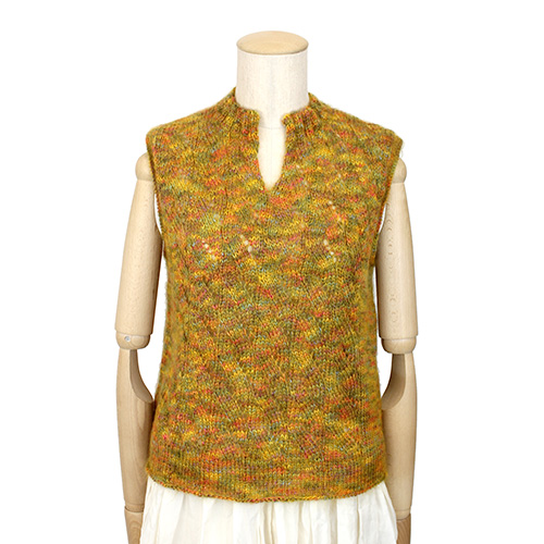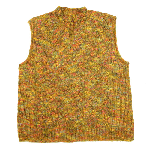 4玉で仕上がるとても軽いベストです。脇はメリヤス編みなので、サイズ調整も簡単です。