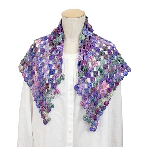 今注目の連続モチーフの技法を使って、糸を切らずに編み進めます。 規則的にモチーフを増やせるのでサイズ変更も簡単です。色の変化が効果的で美しいストールです。 素材:ウール 90% モヘヤ 10% サイズ:幅 100cm 高さ 70cm 使用針:かぎ針5/0号 * 同品種(レッチェ)での、お色変更も可能です ご希望の場合は、コメント欄にお色変更の詳細を入力してください(在庫がある色に限ります)