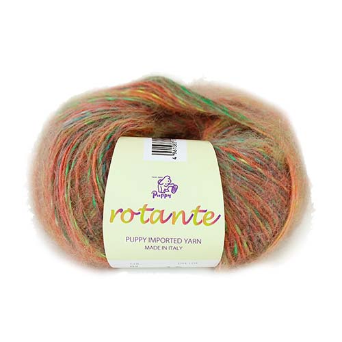 「回転」を意味するその名はカラフルな色が回転するように見える様子から名付けられました。濁りの無いクリアな色合いのモヘヤーンです。かぎ針・棒針ともにお楽しみいただけます。(イタリー)