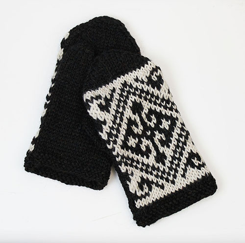 ヨーロッパの紋章からインスピレーションを得て編んだミトンは、ベーシックな配色により素朴でクラシカルな印象に。 コートの袖口からのぞく存在感のある手元に。