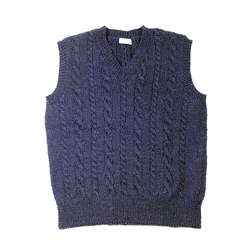 縄模様のシンプルなメンズベストです。着る人を選ばない定番カラーを選びました。 素材:ウール100% 使用針:棒針8号,6号 サイズ:胸囲92cm 着丈61cm 背肩幅38cm * 書籍には掲載されていないパピー企画室オリジナル作品です * 同品種(ブリティッシュファイン)での、お色変更も可能です ご希望の場合は、コメント欄にお色変更の詳細を入力してください(在庫がある色に限ります)