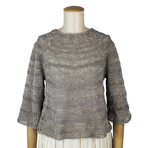 控えめに煌めくラメが上品な丸ヨークセーター。ふんわり軽く爽やかな透け感がお楽しみ頂けます。