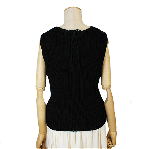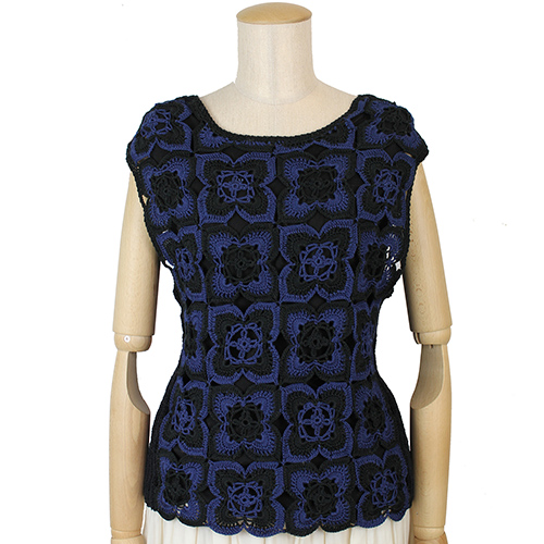 前はモチーフつなぎ、後ろと脇はリブ編みなので、適度に体に沿うシルエットです。