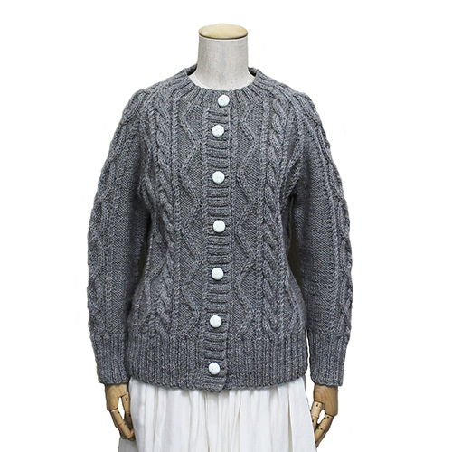 一度は挑戦したいアランのカーディガン。メランジ感のある極太ストレート糸は編み模様の陰影をより美しく見せます。
