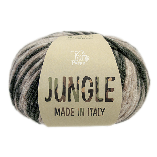 「植物などが絡み合うように密生した森林」を意味するその名は、迷彩模様の様な編地から名付けられました。 メリヤス編みで自然に模様が現れる楽しい糸です。軽い仕上がりなので、分量の大きなウエアにもぴったりです。
