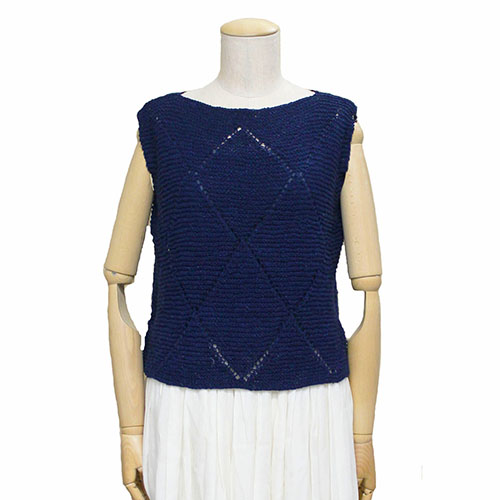 メリヤス編みとかのこ編みを交互に配した、シンプル模様のポロセーター。 ゆったりとしたサイズ感ですが、ボリュームのあるボトムにも合わせやすい仕上がりです。 素 材:コットン100% 使用針:棒針5号 サイズ:胸囲98cm 背肩幅38cm 着丈48.5cm ヨーロッパの手あみ掲載作品 * 同品種(ピマデニム)での、お色変更も可能です ご希望の場合は、コメント欄にお色変更の詳細を入力してください(在庫がある色に限ります)