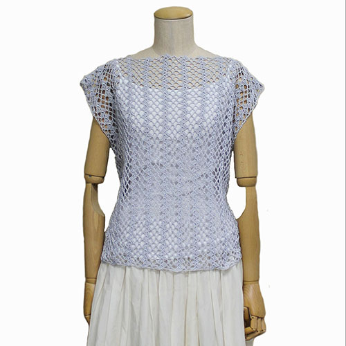 数量限定の完成品販売!(なくなり次第終了) サンプルSALE 超特価! 細いコットン×リネン糸で丁寧に編みたい、さらっと着心地のかぎ針編みセーター。 レーシーな柄で縦のラインを強調し,すらりと見せてくれます。 (1点1点手作りしています) 素 材:コットン61% リネン39% サイズ:胸囲96cm 着丈54cm 裄丈24cm * サンプル品のため特別価格になっています