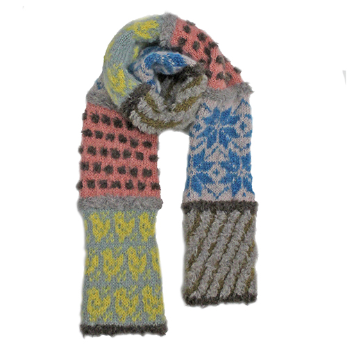 触り心地の良い糸をたっぷり使った、4種類の編み込み模様のマフラー