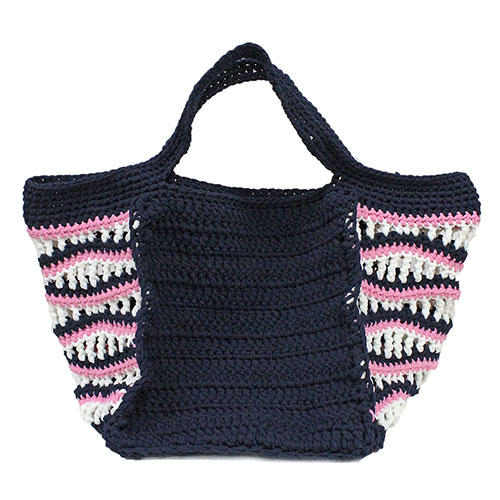 ベーシックカラーにサイド部分だけ夏らしいパンチの効いた色で波模様を合わせた心おどるたっぷりサイズのバッグ。
