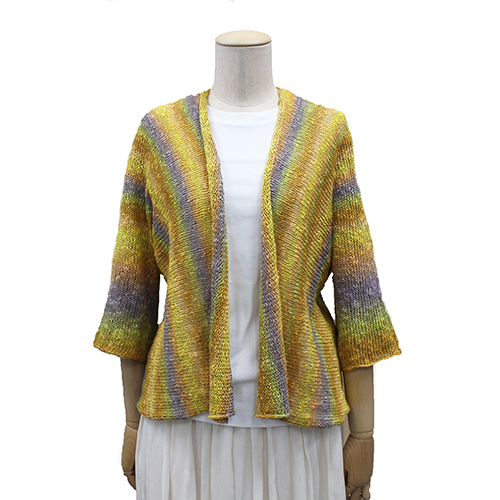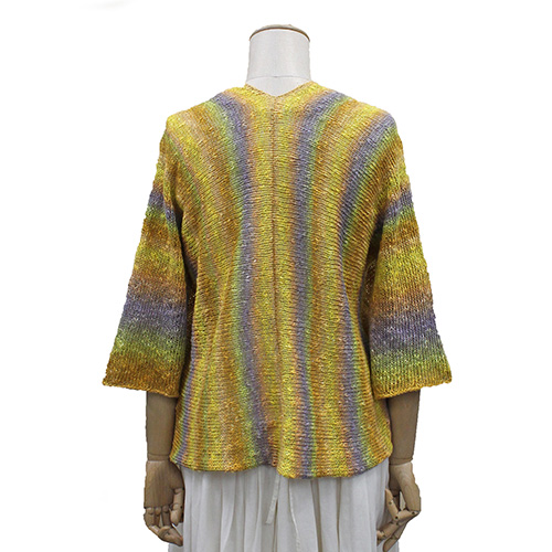 【LANG】 この梳毛糸はウールを含まず、春から夏にかけて涼しく保つのでウエアに最適です。 数量限定販売糸(在庫なくなり次第終了) 着分:3玉のSET販売 参考作品の 3玉で出来る「マルチカラー横編みカーディガン」の編み図付 使用針:棒針6号 *m/g表記=3玉分