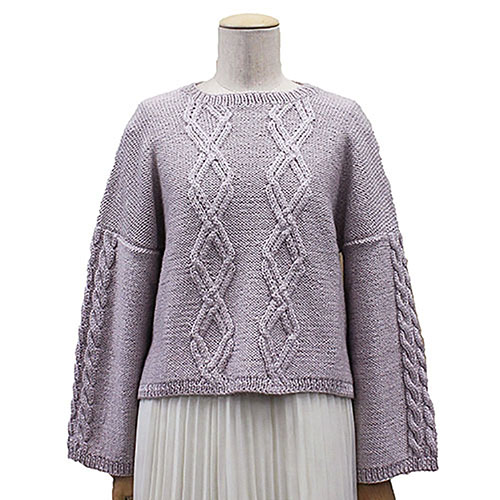 数量限定の完成品販売!(なくなり次第終了) サンプルSALE 超特価! ダイヤ模様を身頃に、袖にはケーブルを。 シルクやモヘヤの入った高級素材で、 肩の力を少し抜いたさり気ないアランセーターを表現しています。 (1点1点手作りしています) 素 材:ウール58% モヘヤ25% シルク17% サイズ:胸囲104cm 着丈(後)51cm 着丈(前)46cm 裄丈66cm col=ピンクベージュ * サンプル品のため特別価格になっています