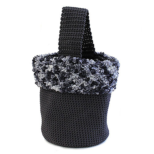 数量限定の完成品販売!(なくなり次第終了) サンプルSALE 超特価! 人気のワンハンドルの筒形バッグです。 シンプルな本体と入れ口のファンシーヤーンの組み合わせは手編みならでは。 置いてあるだけで絵になるデザインです。 (1点1点手作りしています) 素 材:ポリエステル70% ウール26% ナイロン4% サイズ:底直径16cm 深さ22cm * サンプル品のため特別価格になっています