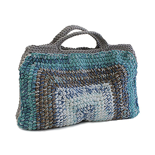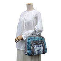 色の流れがユニークな素材と軽くてポップな素材を組み合わせたスクエアトートバッグです。