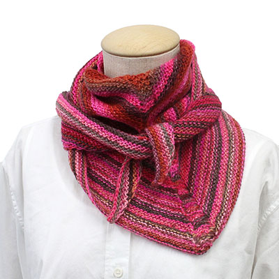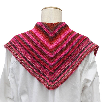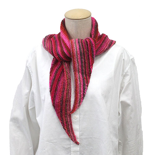 段染めの美しさを存分に楽しみながら編む三角ストールです。