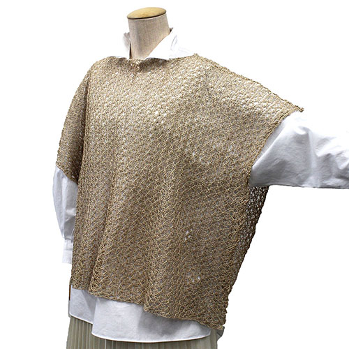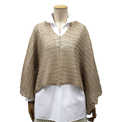 長方形の編地を2枚合わせて肩を接ぐだけのやさしく編めるサマーポンチョです。